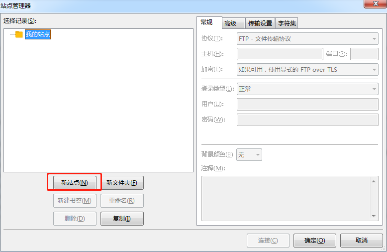 点击左上角站点管理器,连接