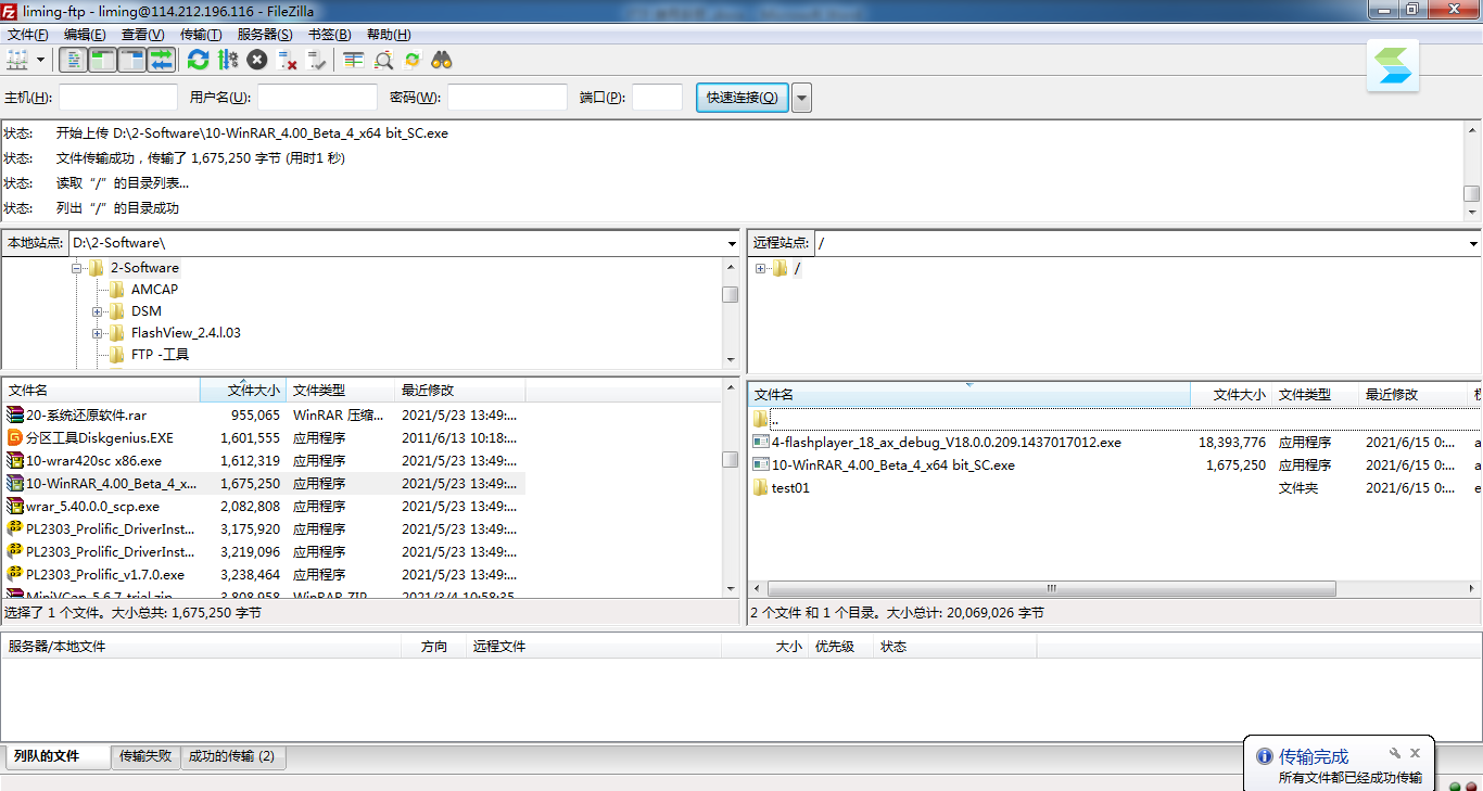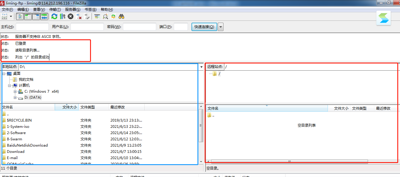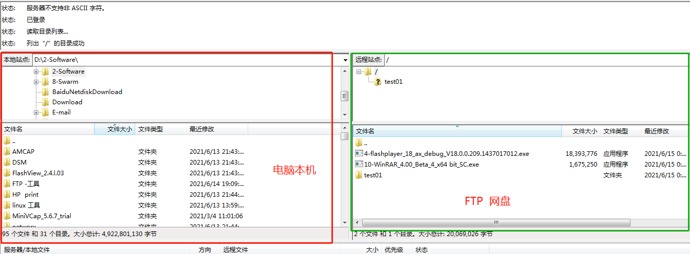 左边部分是电脑本机,右边部分是FTP 网盘