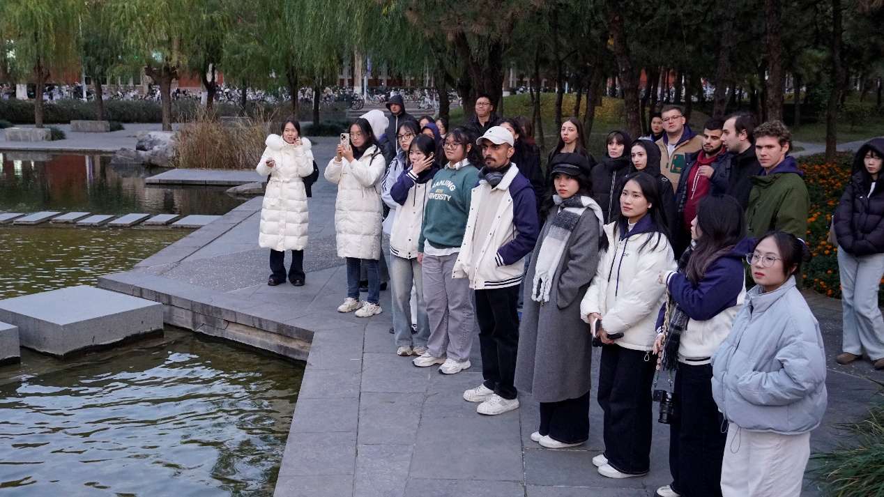 傍晚时分,师生漫步校园,驻足"眉湖"畔的汉字文化展区。老师生动讲解了汉字八千年的演变历程,从早期的"眼""上""下"等象形符号,到甲骨文的形态解析,一幅幅图文并茂的展示,使汉字从图像到文字的演变过程栩栩如生。大家在这样一场别开生面的古今对话中,深切感受到了汉字的独特魅力与中华文明绵延不绝的生命力。