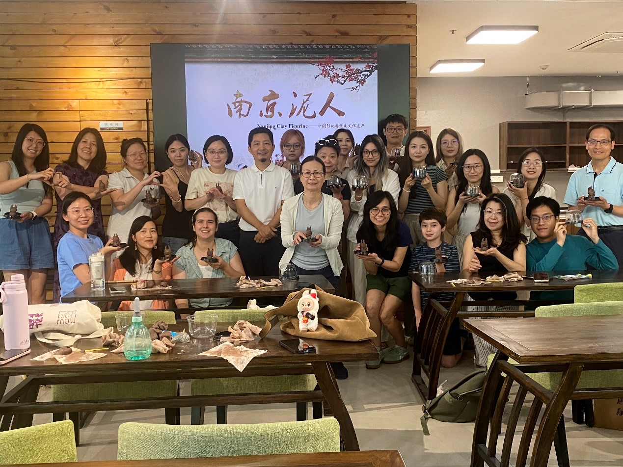 培训项目课程还特别开设了高级研讨课程,为学员们提供了更为广阔的学术视野和实践机会。吴中伟老师以真实生动的案例,深入浅出分享了词汇与语法教学原则与方法。胡文华老师从汉字与汉语的关系入手,以《等级标准》为纲,为学员们带来了别开生动的面对美国员工的初级中文汉字教学。吴勇毅老师深入剖析了《国际中文教师专业能力标准》的发展历史与重要意义,阐述了其对中文教师专业发展的指导作用。曹贤文老师结合实际教学场景,带领学员了解最新版《国际中文教学通用课程大纲》的修订背景和核心变化。张凤永老师则分享了AI背景下中文差异化教学的理念和策略,展示了AI辅助下的教学设计,令学员们对AI时代的差异化教学有了清晰认识,为今后优化中文教学模式提供了实用思路。南京泥人非遗传承人朱建东老师向学员们介绍了关于南京非遗文化泥塑的历史,现场带领学员们制作完成具有个人特色的泥塑作品。