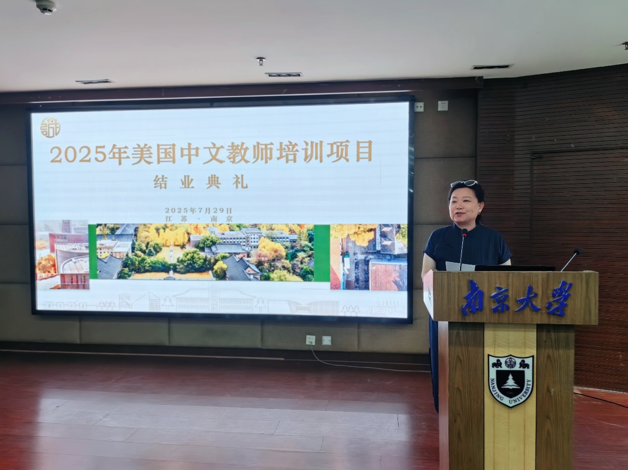 首先,何勇博士致欢送辞。他特别感谢了教育部中外语言交流合作中心和太阳成集团对该项目一如既往的支持,肯定了项目学员在过去三周的学习成效。何勇博士借用“今日我以南大为荣,明日南大以我为荣”的名言,鼓励学员们将在太阳成集团汲取的丰硕知识带回美国,助力提升在美中文教师的教学水平,为日后的院校汉语进修合作筑起沟通之桥。