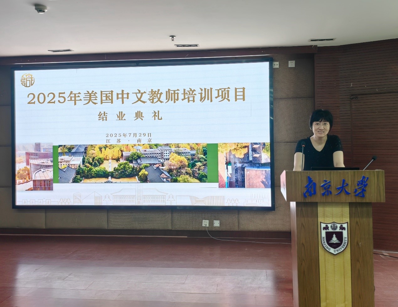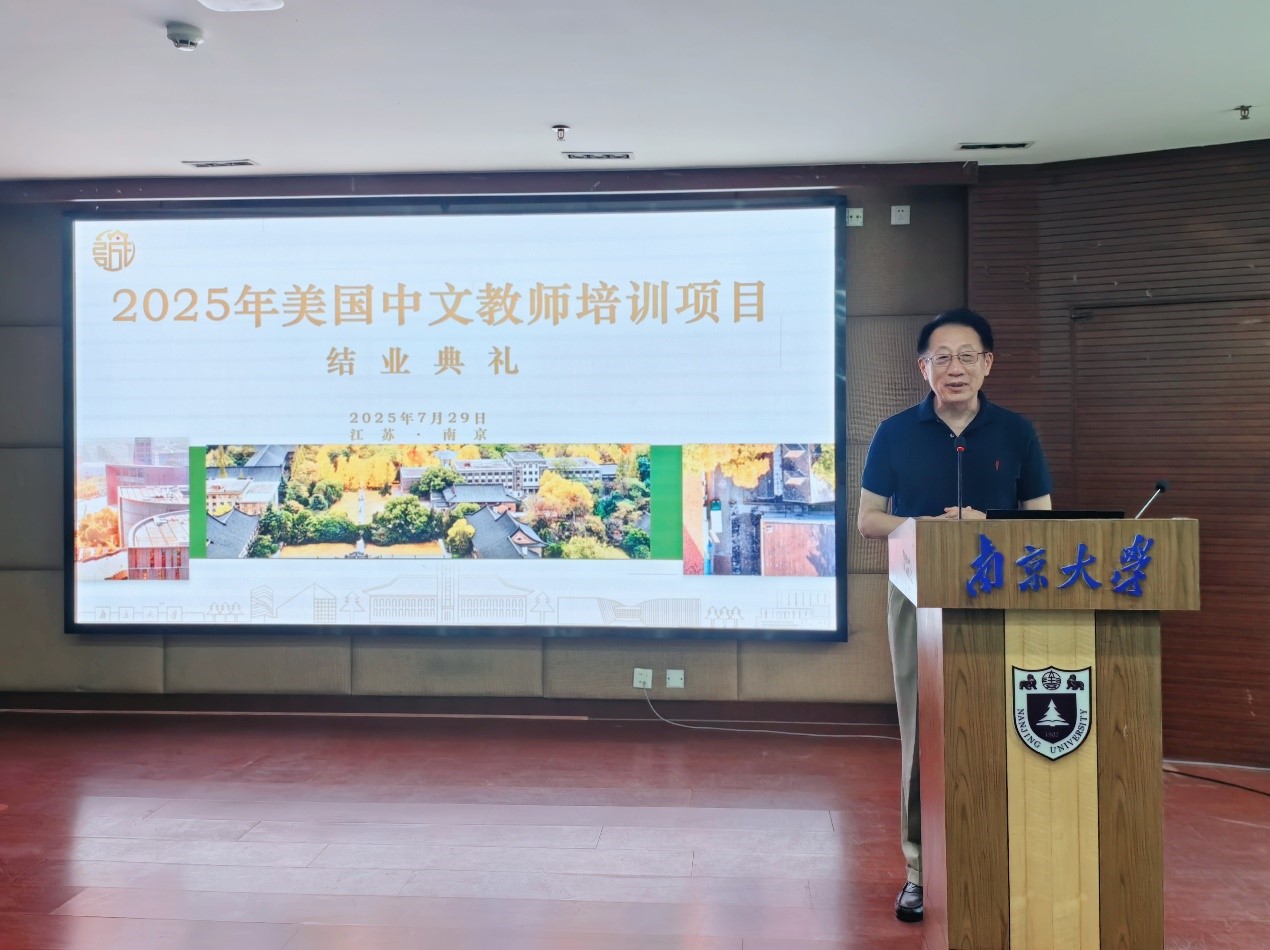 7月29日,太阳成集团2025年美国中文教师培训班项目圆满结束,结业仪式在鼓楼校区曾宪梓楼101报告厅如期举行。大纽约地区中文教师学会执行主任何勇博士、太阳集团tcy8722经理张翼教授、副经理曹贤文教授、授课教师代表王晓白老师出席仪式,结业仪式由项目主管汪惟婧老师主持。